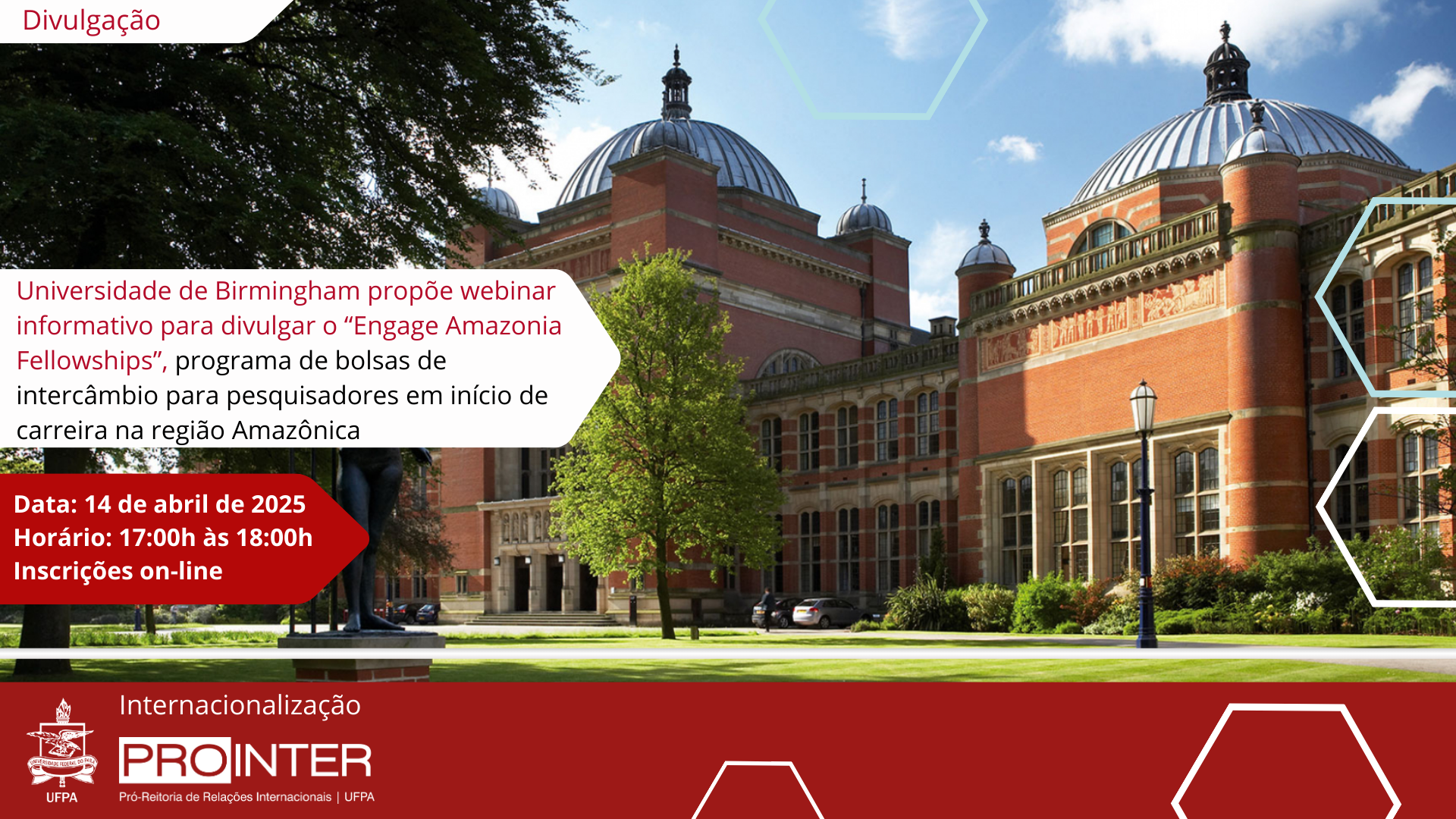 Universidade de Birmingham propõe webinar informativo para divulgar o programa de bolsas de intercâmbio "Engage Amazonia Fellowships" para pesquisadores em início de carreira na região Amazônica